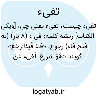 (به فتح فاء) رجوع. «فاءَ فَیْئاً:رَجَعَ» گویند:«هُوَ سَریعُ الْفیْ‏ء عَنْ غَضَبِهِ»یعنی او از خشمش زود برمی گردد. با گروه متجاوز بجنگید تا بطاعت خدا برگردد.. اگر ایلاء کنندگان به زنانشان برگشتند و کفاره دادند خدا آمرزنده و مهربان است.. سایه‏های آن از راست و چپ در حال خضوع به خدا بر می گردد. فی‏ء رسول خدا صلی اللَّه علیه و آله. یعنی اموال و زمینهائیکه خدا از بنی نضیر بر پیامبرش برگردانده شما اسبان و شتران بر آنها نتاختید... ظهور آیه اول آن است که فی‏ء (اموال و زمین هائیکه بدون جنگ از کفار رسیده) مال رسول خداست و کسی را در آن حقی نیست «اَفاءَ اللهُ عَلی رَسُولِهِ». این قسمت اموال و اراضی از انفال است و انفال نیز مخصوص خدا و رسول می‏باشد چنانکه فرموده:. فقها در «مالَمْ یُوجَفْ عَلَیْهِ بِخَیْلٍ وَ لارِکاب» فقط اراضی را فرموده‏اند ولی ظهور «ما اَفاءَ اللهُ عَلی رَسُولِهِ مِنْ اَهْلِ الْقُری‏» در اراضی و اموال هر دو است. آیه دوم مانند آیه خمس است که «فَلِلَّهِ وَ لِلرَّسُولِ وَ لِذِی الْقُرْبی» هر سه با لام اختصاص آمده و «لِذِی الْقُرْبی» نیز مفرد است، باید یک فرد بیشتر نباشد و آن قهراً امام است که هم ذی القربی و هم جانشین پیغمبر «صلی الله علیه و اله» است اما «وَالْیَتامی وَالْمَساکینِ وَ ابْنِ السَّبیلِ» همه بدون لام وعطف بر«ذِی الْقُرْبی»اند و این نشان می‏دهد که گروه سه گانه باید از سادات باشند چنانکه از ائمه اهل بیت علیهم السلام نقل شده است. و نیز آیه دوم بیان مصرف فی‏ء است یعنی اموال بنی النضیر( به موجب آیه اول) و مطلق آنچه به پیغمبر از اهل قریه‏ها رسیده( به موجب آیه دوم) مال رسول خداست پیغمبر آنها را در موارد شش گانه مصرف می‏کند: در راه خدا، برای خود، برای ذی القربی و یتامی و مساکین و ابن سبیل آنها، در باره «لِلْفُقَراء» در آیه سوم گفته‏اند: بدل است از ذی القربی و مابعد آن در این صورت فی‏ء مختص است به رسول خدا و فقراء مهاجرین و گفته‏اند بدل است از یتامی و مساکین و ابن سبیل، آن وقت فی‏ء مخصوص رسول خدا و ذی القربی و یتامی و مساکین و ابن سبیل مهاجرین است. ولی بهتر از همه قول المیزان است که فرموده: انسب آن است که «لِلْفُقَراء الْمُهاجِرینَ» بیان مصداق برای مصرف سهم الله باشد که با «فَلِلَّه»اشاره شده نه اینکه فقراء مهاجرین از سهیمان فی ءاند بلکه صرف فی‏ء در آنها صرف در فی سبیل الله است. و نیز انسب آن است که «وَ الَّذینَ تَبَّوَ ؤُ الدَّارَ» و «وَ الَّذینَ جاءُو مِنْ بَعْدِهِمْ» عطف بر مهاجرین باشد و همه مصداق صرف سهم الله باشند و اینکه نقل شده: رسول خدا«صلی اللَّه علیه و آله» فی‏ء بنی نضیررا به مهاجرین و به سه یا دو نفر از فقراء انصار داد این معنی را تأیید می‏کند (به اختصار). نگارنده گوید: بنابر آنکه نقل شدفی‏ء مال خدا و رسول و ذی القربی است رسول خدا و امام سهم الله را در راه خدا و سهم رسول و ذی القربی را در موارد پنجگانه مصرف می‏کنندبدین طریق فی‏ء در نیازمندی‏های عموم اعم از سادات و غیره مصرف می‏شود چنانکه موارد ششگانه آیه خمس نیز چنین است و الحمدالله. در مجمع ذیل آیات فوق ازمنهال بن عمر و از امام سجاد«علیه السلام» نقل کرده گوید: گفتم: قول خدا «وَلِذِی الْقُرْبی وَالْیَتامی وَالْمَساکینِ وَابْنِ‏السَّبیلِ» ؟فرمود: آنها اقرباء ما، مساکین ما و ابناء سبیل مااندبعد فرموده: همه فقهاء (از اهل سنت) گفته‏اند: آنها یتامای عموم مردم اند همچنین مساکین و ابناء سبیل، این مطلب از ائمه علیهم السلام نیز نقل شده است. ناگفته نماند: فقهاء اهل سنت در آیات دقت نکرده‏اند و آنچه از اهل بیت علیهم السلام وارد شده ظاهراًدر باره مصرف سهم الله است تا هر دو نقل قابل جمع باشد.