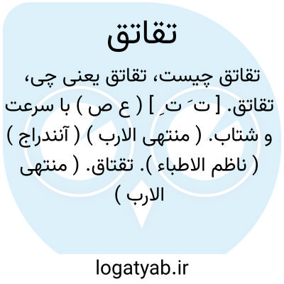 لغت نامه دهخدا تقاتق. [ ت َ ت ِ ] ( ع ص ) با سرعت و شتاب. ( منتهی الارب ) ( آنندراج ) ( ناظم الاطباء ). تقتاق. ( منتهی الارب ) ( آنندراج ). یقال: قرب تقاتق. ( ناظم الاطباء ).