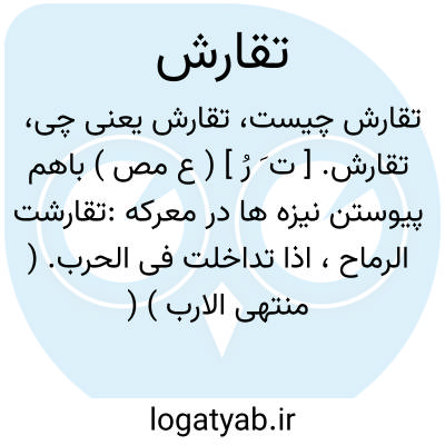 لغت نامه دهخدا تقارش. [ ت َ رُ ] ( ع مص ) باهم پیوستن نیزه ها در معرکه:تقارشت الرماح، اذا تداخلت فی الحرب. ( منتهی الارب ) ( ناظم الاطباء ) ( آنندراج ) ( از اقرب الموارد ). || نیزه زدن قوم یکدیگر را. ( از اقرب الموارد ).