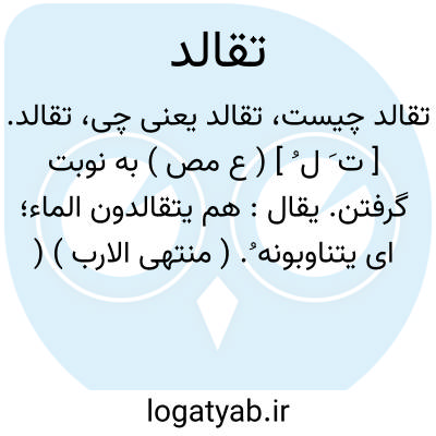 تقالد. [ ت َ ل ُ ] ( ع مص ) به نوبت گرفتن. یقال: هم یتقالدون الماء؛ ای یتناوبونه ُ. ( منتهی الارب ) ( ناظم الاطباء ) ( از اقرب الموارد ).