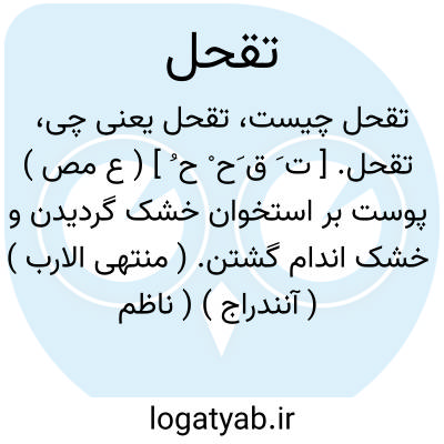 تقحل. [ ت َ ق َح ْ ح ُ ] ( ع مص ) پوست بر استخوان خشک گردیدن و خشک اندام گشتن. ( منتهی الارب ) ( آنندراج ) ( ناظم الاطباء ). پوست بر استخوان خشک گردیدن از کلان سالی. ( از اقرب الموارد ).