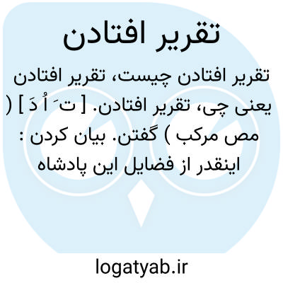 تقریر افتادن. [ ت َ اُ دَ ] ( مص مرکب ) گفتن. بیان کردن: اینقدر از فضایل این پادشاه تقریر افتاد. ( کلیله و دمنه ). اینقدر از فضایل ملک که تالی و تابع دین است تقریر افتاد.( کلیله و دمنه ). این حکمتی چند موجز از خصایص ملک ودولت... تقریر افتاد. ( کلیله و دمنه ). || مقرر گردیدن: وزارت بر ابوالحسن... عتبی تقریر افتاد. ( ترجمه تاریخ یمینی چ 1 تهران ص 46 ).