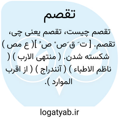 تقصم. [ ت َ ق َص ْ ص ُ ]( ع مص ) شکسته شدن. ( منتهی الارب ) ( ناظم الاطباء ) ( آنندراج ) ( از اقرب الموارد ). انقصام. ( اقرب الموارد ).