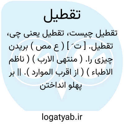 تقطیل. [ ت َ ] ( ع مص ) بریدن چیزی را. ( منتهی الارب ) ( ناظم الاطباء ) ( از اقرب الموارد ). || بر پهلو انداختن کسی را و یا بر زمین افکندن او را. ( منتهی الارب ) ( ناظم الاطباء ) ( از اقرب الموارد ).