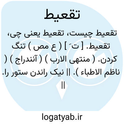 تقعیط. [ ت َ ] ( ع مص ) تنگ کردن. ( منتهی الارب ) ( آنندراج ) ( ناظم الاطباء ). || نیک راندن ستور را. || درشتی کردن در سخن. || فحش گفتن. ( منتهی الارب ) ( آنندراج ) ( ناظم الاطباء ) ( از اقرب الموارد ). || درشتی کردن در سخن. ( منتهی الارب ) ( آنندراج ) ( ناظم الاطباء ). || الحاح کردن بر غریمه. ( از اقرب الموارد ).