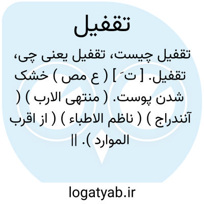 تقفیل. [ ت َ ] ( ع مص ) خشک شدن پوست. ( منتهی الارب ) ( آنندراج ) ( ناظم الاطباء ) ( از اقرب الموارد ). || قفل کردن. ( تاج المصادر بیهقی ) ( زوزنی ). قفل نمودن در را. ( منتهی الارب ) ( ناظم الاطباء ) ( از اقرب الموارد ) ( آنندراج ). || نگه داشتن چیزی. || فراهم آوردن گندم و مانند آن را. ( منتهی الارب ) ( آنندراج ) ( ناظم الاطباء ).