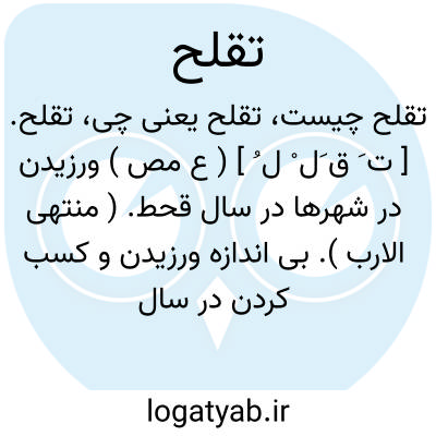 تقلح. [ ت َ ق َل ْ ل ُ ] ( ع مص ) ورزیدن در شهرها در سال قحط. ( منتهی الارب ). بی اندازه ورزیدن و کسب کردن در سال قحط. ( ناظم الاطباء ) ( از اقرب الموارد ). || ریمناک گردانیدن زن جامه خود را و به نظافت خود و جامه خود نپرداختن. ( از اقرب الموارد ).