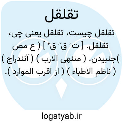 تقلقل. [ ت َ ق َ ق ُ ] ( ع مص )جنبیدن. ( منتهی الارب ) ( آنندراج ) ( ناظم الاطباء ) ( از اقرب الموارد ). || گردیدن در شهرها. ( از اقرب الموارد ). || بیقراری و اندوه. || آواز کردن صراحی. ( غیاث اللغات ) ( آنندراج ).
