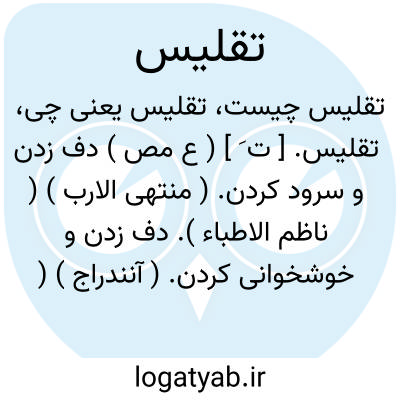 تقلیس. [ ت َ ] ( ع مص ) دف زدن و سرود کردن. ( منتهی الارب ) ( ناظم الاطباء ). دف زدن و خوشخوانی کردن. ( آنندراج ) ( از اقرب الموارد ). || استقبال کردن ملوک و ولاة را به انواع لهو و لعب بوقت قدوم. ( منتهی الارب ) ( ناظم الاطباء ) ( آنندراج ) ( از اقرب الموارد ). || نهادن مرد هر دو دست خود بر سینه و فروتنی نمودن. ( منتهی الارب ) ( ناظم الاطباء ) ( از اقرب الموارد ). || قلنسوة پوشانیدن کسی را. ( از اقرب الموارد ).