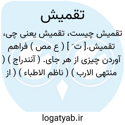 تقمیش.[ ت َ ] ( ع مص ) فراهم آوردن چیزی از هر جای. ( آنندراج ) ( منتهی الارب ) ( ناظم الاطباء ) ( از اقرب الموارد ).