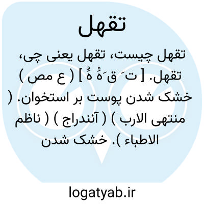 تقهل. [ ت َ ق َهَْ هَُ ] ( ع مص ) خشک شدن پوست بر استخوان. ( منتهی الارب ) ( آنندراج ) ( ناظم الاطباء ). خشک شدن پوست. ( از اقرب الموارد ). || بدحال شدن. ( منتهی الارب ) ( آنندراج ) ( ناظم الاطباء ). || آلوده داشتن خود را و پاک و صاف ناکردن تن را. || سست و نرم رفتن. || ضعیف و نرم گردیدن آواز. || گله کردن حاجت. ( منتهی الارب ) ( آنندراج ) ( ناظم الاطباء ) ( از اقرب الموارد ).
