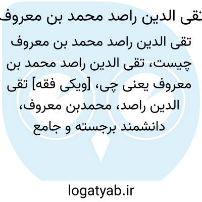 [ویکی فقه] تقی الدین راصد، محمدبن معروف، دانشمند برجسته و جامع الاطراف قرن دهم، صاحب آثار متعددی در زمینة ستاره شناسی، ریاضیات، مکانیک و مهندسی، نورشناسی، پزشکی و بازداری. او را راصد شامی، دمشقی و مصری نیز خوانده اند.