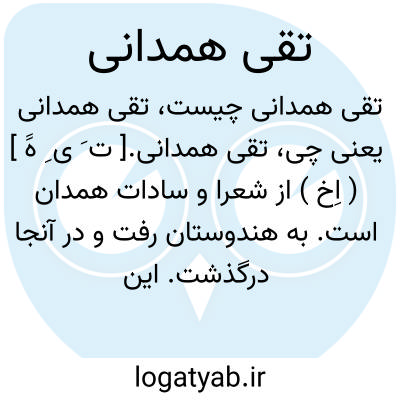 تقی همدانی.[ ت َ ی ِ هََ ] ( اِخ ) از شعرا و سادات همدان است. به هندوستان رفت و در آنجا درگذشت. این بیت از اوست: