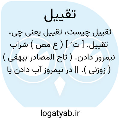 تقییل. [ ت َ ] ( ع مص ) شراب نیمروز دادن. ( تاج المصادر بیهقی ) ( زوزنی ). || در نیمروز آب دادن یا دوشیدن ناقه را در آن وقت. ( منتهی الارب ) ( آنندراج ) ( ناظم الاطباء ). در نیمروز آب دادن. ( از اقرب الموارد ). || نیمروزان بر آب آوردن شتران را. ( منتهی الارب ) ( آنندراج ) ( ناظم الاطباء ). و رجوع به تقیل شود.