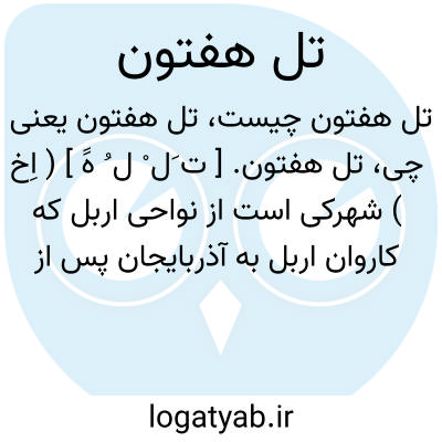 تل هفتون. [ ت َل ْ ل ُ هََ ] ( اِخ ) شهرکی است از نواحی اربل که کاروان اربل به آذربایجان پس از دو روز بدانجا فرود آید. در وسط کوهها است و رودی در آن جاری است و خانه ها بر بالای تلی ساخته شده است. دارای بازاری است و ساکنان آنجا کردند. ( از معجم البلدان ).
