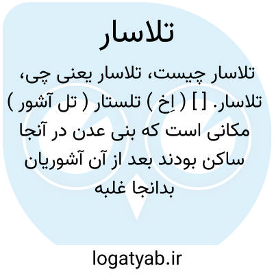 تلاسار. [ ] ( اِخ ) تلستار ( تل آشور ) مکانی است که بنی عدن در آنجا ساکن بودند بعد از آن آشوریان بدانجا غلبه کردند دوم پادشاهان 19:12 و کتاب اشعیا 37:12. رولنسن گمان میبرد که موقع تلاسار در غربی الجزیره در نزدیکی حاران و اورفا واقع است لیکن لیرد گمان دارد که در طرف غربی، در نزدیکی تل عفر، شانزده یلی موصل واقع است. ( از قاموس کتاب مقدس ).