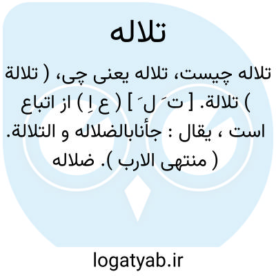 ( تلالة ) تلالة. [ ت َ ل َ ] ( ع اِ ) از اتباع است، یقال: جأنابالضلاله و التلالة. ( منتهی الارب ). ضلاله و گمراهی و یا از اتباع ضلالة است. ( ناظم الاطباء ). و رجوع به تلال شود.