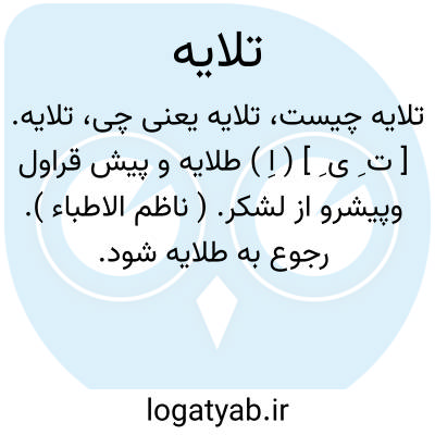 تلایه. [ ت ِ ی ِ ] ( اِ ) طلایه و پیش قراول وپیشرو از لشکر. ( ناظم الاطباء ). رجوع به طلایه شود.