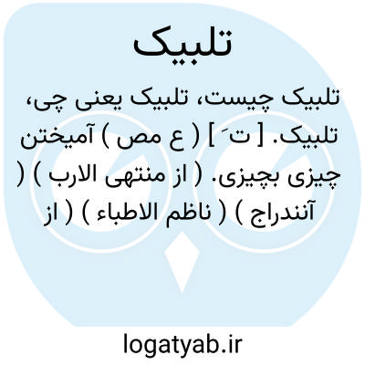 تلبیک. [ ت َ ] ( ع مص ) آمیختن چیزی بچیزی. ( از منتهی الارب ) ( آنندراج ) ( ناظم الاطباء ) ( از اقرب الموارد ).