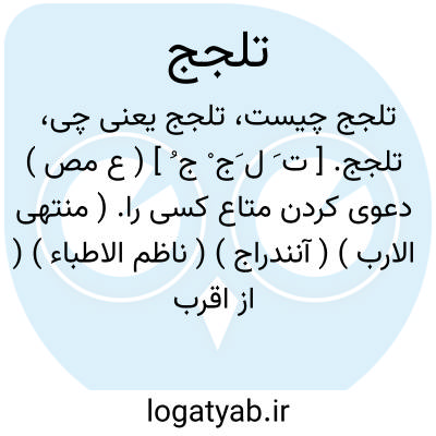 تلجج. [ ت َ ل َج ْ ج ُ ] ( ع مص ) دعوی کردن متاع کسی را. ( منتهی الارب ) ( آنندراج ) ( ناظم الاطباء ) ( از اقرب الموارد ).