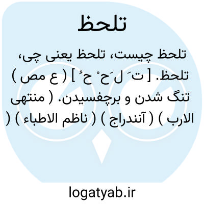 لغت نامه دهخدا تلحظ. [ ت َ ل َح ْ ح ُ ] ( ع مص ) تنگ شدن و برچفسیدن. ( منتهی الارب ) ( آنندراج ) ( ناظم الاطباء ) ( از اقرب الموارد ). || ( ع اِ ) تنگی. ( منتهی الارب ) ( آنندراج ) ( ناظم الاطباء ).