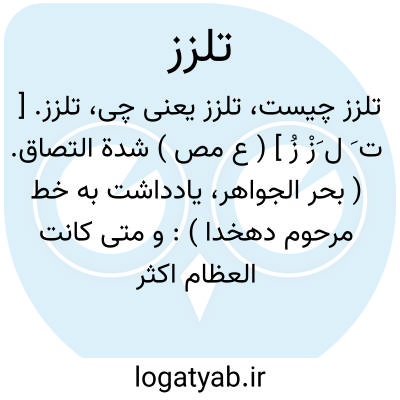 تلزز. [ ت َ ل َزْ زُ ] ( ع مص ) شدة التصاق. ( بحر الجواهر، یادداشت به خط مرحوم دهخدا ): و متی کانت العظام اکثر تلززا کانت منفعتها ابلغ. ( ابن البیطار، یادداشت ایضاً ).
