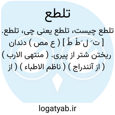 تلطع. [ ت َ ل َطْ طُ ] ( ع مص ) دندان ریختن شتر از پیری. ( منتهی الارب ) ( از آنندراج ) ( ناظم الاطباء ) ( از اقرب الموارد ).