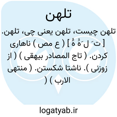 تلهن. [ ت َ ل َهَْ هَُ ] ( ع مص ) ناهاری کردن. ( تاج المصادر بیهقی ) ( از زوزنی ). ناشتا شکستن. ( منتهی الارب ) ( آنندراج ) ( ناظم الاطباء ). تعلل کردن به ناشتایی. ( از اقرب الموارد ).