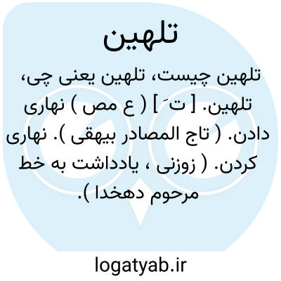 تلهین. [ ت َ ] ( ع مص ) نهاری دادن. ( تاج المصادر بیهقی ). نهاری کردن. ( زوزنی، یادداشت به خط مرحوم دهخدا ). ناشتا شکستن کسی را. ( منتهی الارب ) ( آنندراج ) ( ناظم الاطباء ) ( از اقرب الموارد ). || هدیه آوردن از سفر آینده. ( منتهی الارب ) ( آنندراج ) ( ناظم الاطباء ).