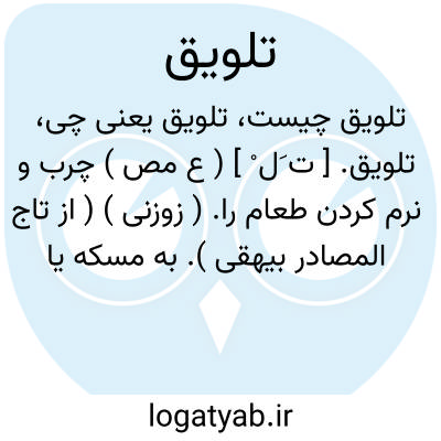 تلویق. [ ت َل ْ ] ( ع مص ) چرب و نرم کردن طعام را. ( زوزنی ) ( از تاج المصادر بیهقی ). به مسکه یا به روغن نیکو کردن طعام را. و یقال: لا اکل الا ما لوق لی؛ ای لین لی حتی یصیر کالزبد فی لینه. ( منتهی الارب ) ( از اقرب الموارد ) ( از آنندراج ) ( ناظم الاطباء ).