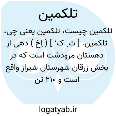 لغت نامه دهخدا تلکمین. [ ت ِ ک ُ ] ( اِخ ) دهی از دهستان مرودشت است که در بخش زرقان شهرستان شیراز واقع است و 210 تن سکنه دارد. ( از فرهنگ جغرافیایی ایران ج 7 ).