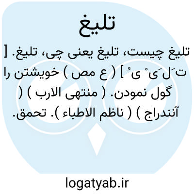 تلیغ. [ ت َل َی ْ ی ُ ] ( ع مص ) خویشتن را گول نمودن. ( منتهی الارب ) ( آنندراج ) ( ناظم الاطباء ). تحمق. ( اقرب الموارد ).