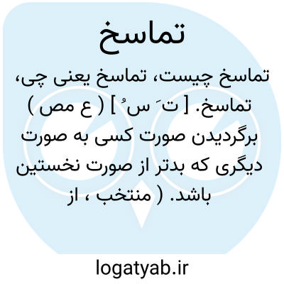 تماسخ. [ ت َ س ُ ] ( ع مص ) برگردیدن صورت کسی به صورت دیگری که بدتر از صورت نخستین باشد. ( منتخب، از غیاث اللغات ) ( آنندراج ). رجوع به مسخ شود.