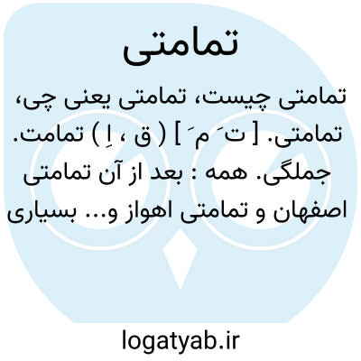 تمامتی. [ ت َ م َ ] ( ق، اِ ) تمامت. جملگی. همه: بعد از آن تمامتی اصفهان و تمامتی اهواز و... بسیاری دیگر از شهرها فتح کرد. ( تاریخ قم ص 294 ). رجوع به ماده قبل شود.