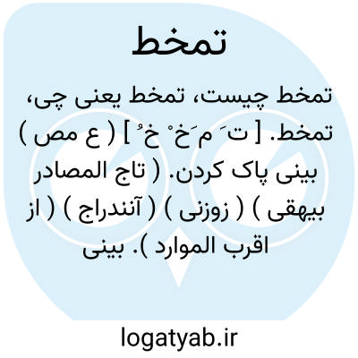تمخط. [ ت َ م َخ ْ خ ُ ] ( ع مص ) بینی پاک کردن. ( تاج المصادر بیهقی ) ( زوزنی ) ( آنندراج ) ( از اقرب الموارد ). بینی افشاندن. ( منتهی الارب ) ( ناظم الاطباء ). || مضطربانه افتان و خیزان رفتن. ( منتهی الارب ) ( آنندراج ) ( ناظم الاطباء ) ( از اقرب الموارد ).