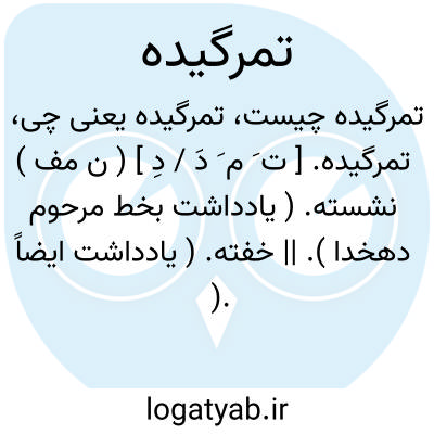 تمرگیده. [ ت َ م َ دَ / دِ ] ( ن مف ) نشسته. ( یادداشت بخط مرحوم دهخدا ). || خفته. ( یادداشت ایضاً ). رجوع به تمرگیدن شود.