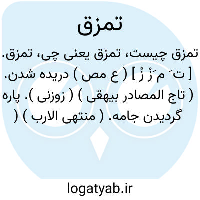 مضیت تمزقوا بالمنحسات.( تاریخ بیهقی چ ادیب ص 192 ).اگر زمان آن تحکمات امتداد یافتی نظم حال و مال بگسستی و جمعیت حشم به تفرق و تمزق پیوستی. ( ترجمه تاریخ یمینی چ 1 تهران ص 188 ).