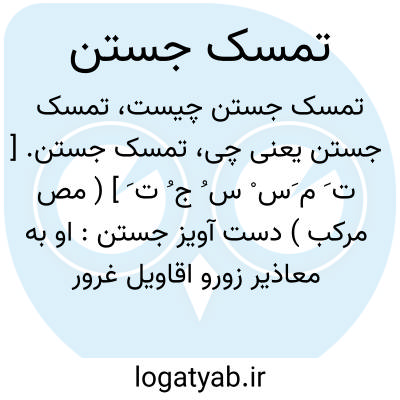 تمسک جستن. [ ت َ م َس ْ س ُ ج ُ ت َ ] ( مص مرکب ) دست آویز جستن: او به معاذیر زورو اقاویل غرور تمسک جست. ( ترجمه تاریخ یمینی چ 1 تهران ص 317 ). رجوع به تمسک و دیگر ترکیبهای آن شود.