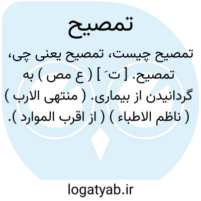 لغت نامه دهخدا تمصیح. [ ت َ ] ( ع مص ) به گردانیدن از بیماری. ( منتهی الارب ) ( ناظم الاطباء ) ( از اقرب الموارد ).