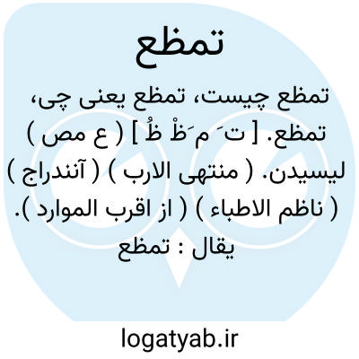 تمظع. [ ت َ م َظْ ظُ ] ( ع مص ) لیسیدن. ( منتهی الارب ) ( آنندراج ) ( ناظم الاطباء ) ( از اقرب الموارد ). یقال: تمظع ما عندنا؛ ای تلحسه ُ کله. ( منتهی الارب ) ( ناظم الاطباء ) ( اقرب الموارد ). || در پی سایه، از جایی بجایی رفتن. ( منتهی الارب ) ( آنندراج ) ( ناظم الاطباء ) ( از اقرب الموارد ). || درنگ کردن از وقت چرانیدن. ( منتهی الارب ) ( آنندراج ) ( ناظم الاطباء ) ( از اقرب الموارد ). یقال: تمظع فی الرعا، اذا تأخر عن الوقت. ( منتهی الارب ) ( ناظم الاطباء ) ( از اقرب الموارد ).