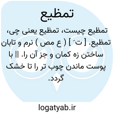 تمظیع. [ ت َ ] ( ع مص ) نرم و تابان ساختن زه کمان و جز آن را. || با پوست ماندن چوب تر را تا خشک گردد. || روغن خورانیدن پوست را. || به چرب تر کردن اشکنه را. ( منتهی الارب ) ( آنندراج ) ( ناظم الاطباء ) ( از اقرب الموارد ).