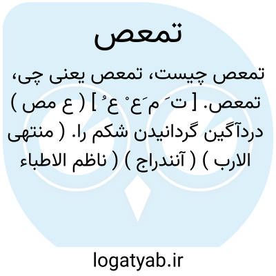 تمعص. [ ت َ م َع ْ ع ُ ] ( ع مص ) دردآگین گردانیدن شکم را. ( منتهی الارب ) ( آنندراج ) ( ناظم الاطباء ) ( از اقرب الموارد ). || شرمگین شدن. ( از اقرب الموارد ).