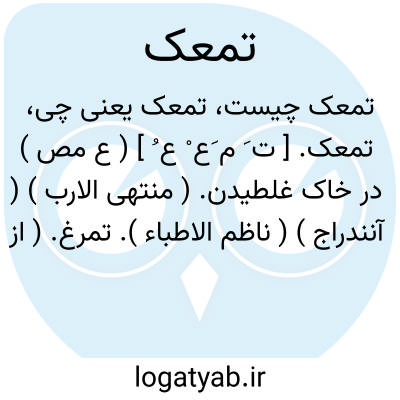 تمعک. [ ت َ م َع ْ ع ُ ] ( ع مص ) در خاک غلطیدن. ( منتهی الارب ) ( آنندراج ) ( ناظم الاطباء ). تمرغ. ( از اقرب الموارد ). در خاک گردیدن. ( زوزنی ) ( تاج المصادر بیهقی ).