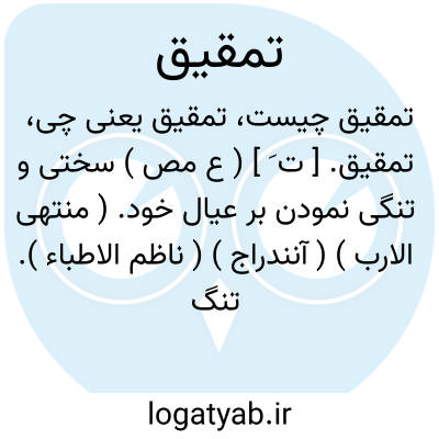 لغت نامه دهخدا تمقیق. [ ت َ ] ( ع مص ) سختی و تنگی نمودن بر عیال خود. ( منتهی الارب ) ( آنندراج ) ( ناظم الاطباء ). تنگ گرفتن نفقه بر عیال خود بر اثر فقر یا بخل. ( از اقرب الموارد ). || بمنقار خورش دادن طائر بچه را. ( منتهی الارب ) ( آنندراج ) ( ناظم الاطباء ) ( از اقرب الموارد ).