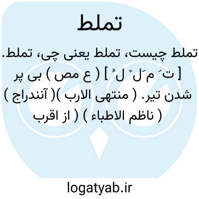 تملط. [ ت َ م َل ْ ل ُ ] ( ع مص ) بی پر شدن تیر. ( منتهی الارب )( آنندراج ) ( ناظم الاطباء ) ( از اقرب الموارد ). || تابان شدن تیر. ( از منتهی الارب ) ( از آنندراج )( از ناظم الاطباء ). تملس چیزی. ( از اقرب الموارد ).