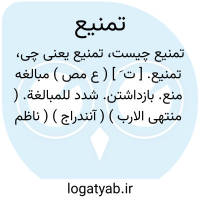 لغت نامه دهخدا تمنیع. [ ت َ ] ( ع مص ) مبالغه منع. بازداشتن. شدد للمبالغة. ( منتهی الارب ) ( آنندراج ) ( ناظم الاطباء ) ( از اقرب الموارد ).