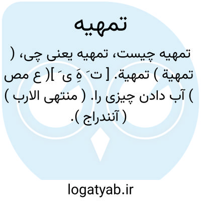 لغت نامه دهخدا ( تمهیة ) تمهیة. [ ت َ هَِ ی َ ]( ع مص ) آب دادن چیزی را. ( منتهی الارب ) ( آنندراج ).