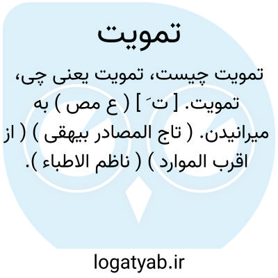 لغت نامه دهخدا تمویت. [ ت َ ] ( ع مص ) به میرانیدن. ( تاج المصادر بیهقی ) ( از اقرب الموارد ) ( ناظم الاطباء ).