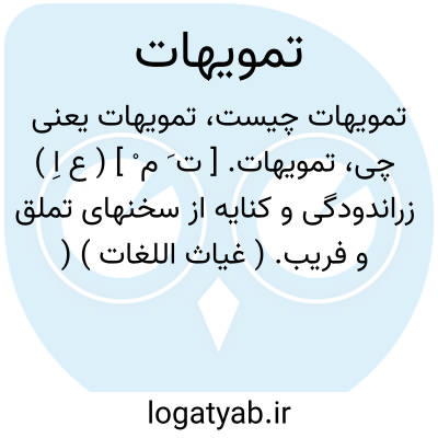 لغت نامه دهخدا تمویهات. [ ت َ م ْ ] ( ع اِ ) زراندودگی و کنایه از سخنهای تملق و فریب. ( غیاث اللغات ) ( آنندراج ): من می اندیشم که بلطایف حیل و بدایع تمویهات گرد این غرض درآیم. ( کلیله و دمنه ). رجوع به تمویه شود.
