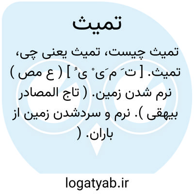 تمیث. [ ت َ م َی ْ ی ُ ] ( ع مص ) نرم شدن زمین. ( تاج المصادر بیهقی ). نرم و سردشدن زمین از باران. ( منتهی الارب ) ( آنندراج ) ( ناظم الاطباء ). نرم شدن زمین از باران. || سرد شدن گرمی. || سست و فروهشته گردیدن مرد. || ذوب شدن چیزی در آب. ( از اقرب الموارد ).